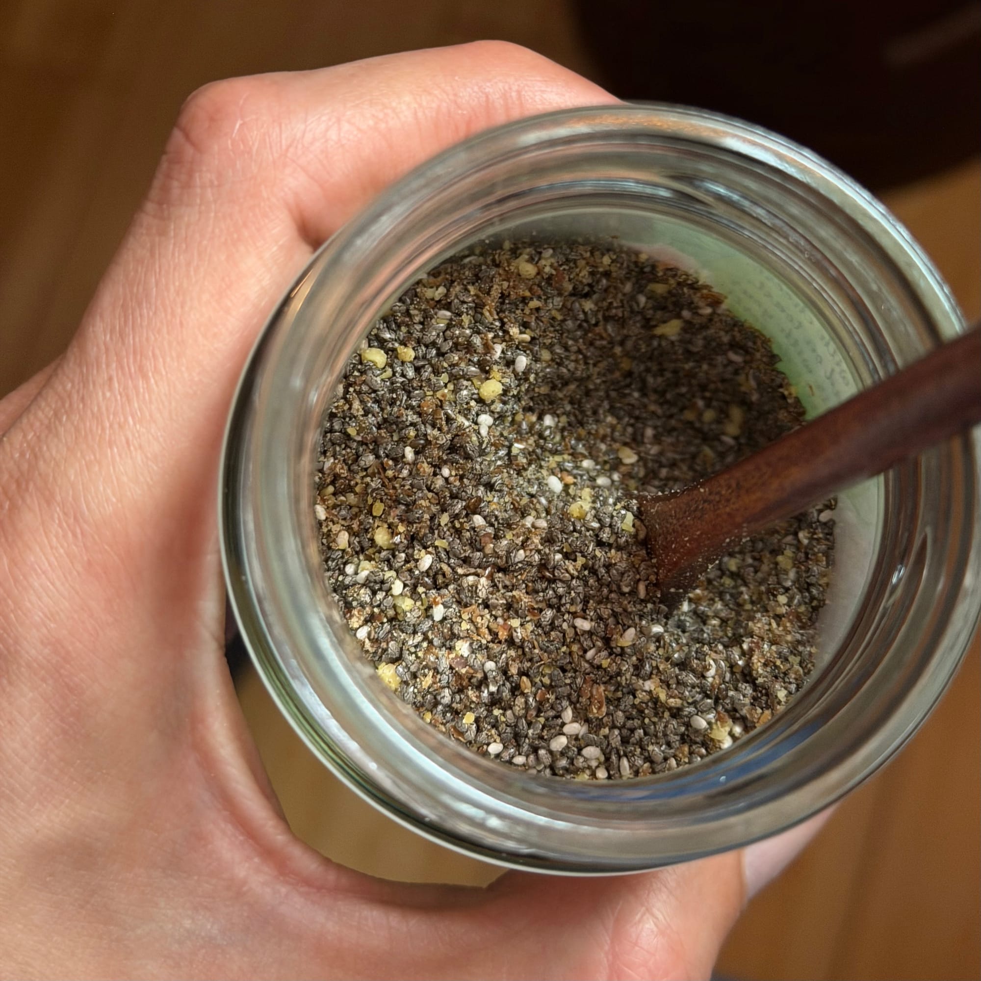 With some inspiration from Chef Corso, I've been working on my own Chia Bomb Mix — a nutrient-dense, no-cook recipe designed for simple cold soaking and slow energy release after eating.